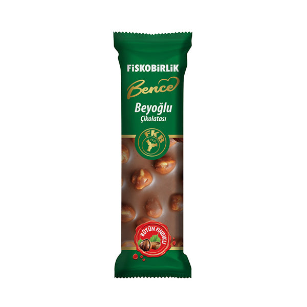 Indulge in the rich, velvety goodness of Fiskobirlik Beyoglu Chocolate With Whole Hazelnuts. This premium Turkish treat features the perfect harmony of creamy milk chocolate and crunchy, whole hazelnuts.