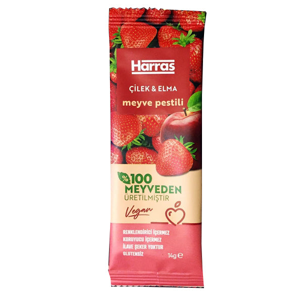 Delight in the naturally sweet and fruity flavor of Harras Strawberry & Apple 100% Fruit Paste. This compact 14g bar blends the juicy taste of ripe strawberries with the crisp, refreshing notes of apple—made entirely from 100% real fruit, with no added sugar, preservatives, or artificial flavors.