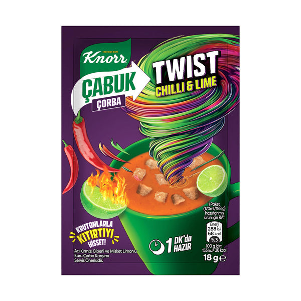 Spice up your day with Knorr Twist Chilli Lime Soup! This quick and easy soup brings together the bold kick of chili and the refreshing zest of lime for an exciting flavor twist. Perfect for those who love a bit of heat, it’s the ultimate instant soup for a fast, flavorful snack or light meal. Simply add hot water, and in minutes, you'll be enjoying a deliciously spicy bowl of soup.